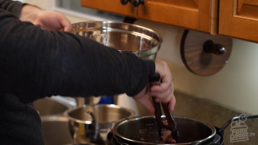 - Place the rest of the beef in the Instant Pot and brown well on all sides. Set aside when done.